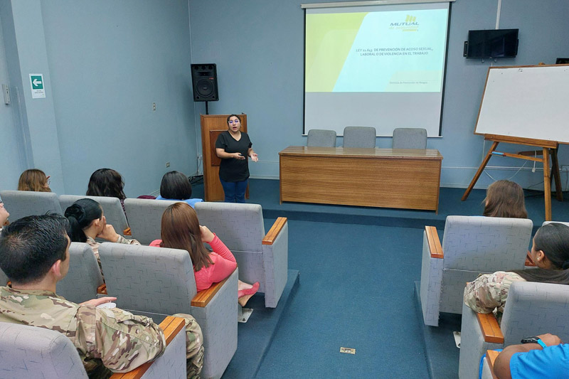 Durante las jornadas informativas realizadas en el auditorio del HMN, la psicóloga Génesis Díaz de la Mutual de Seguridad de la CChC., enfatizó en que esta ley obliga y dispone: