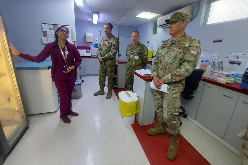 En el marco de una visita inspectiva programada para la guarnición militar de Antofagasta, el día miércoles 09 de abril el Comandante General del Personal, GDD Juan Solari Valdés, acompañado del Comandante en Jefe de la I División de Ejército, GDB Guido Frávega Bordoli, llegó hasta las dependencias del Hospital Militar del Norte, principal recinto de salud militar del norte del país.